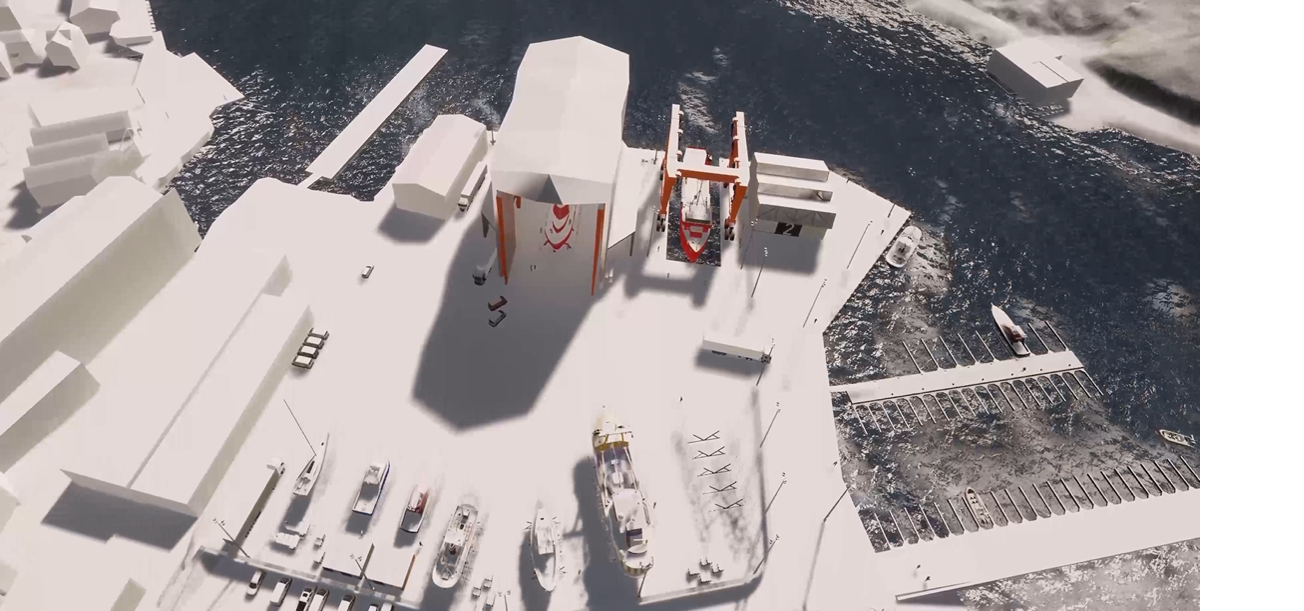 *Fra sommeren 2026 har vi båtheis (Boatlift BL820). Som navnet tilsier har denne en kapasitet på 820 tonn (kan strekkes til 900 tonn) , bredde 15 meter, lengde inntil 50 meter. Der kan vi løfte på land stor kyst, lektre, foringsflåter, servicebåter, katamaraner mm.